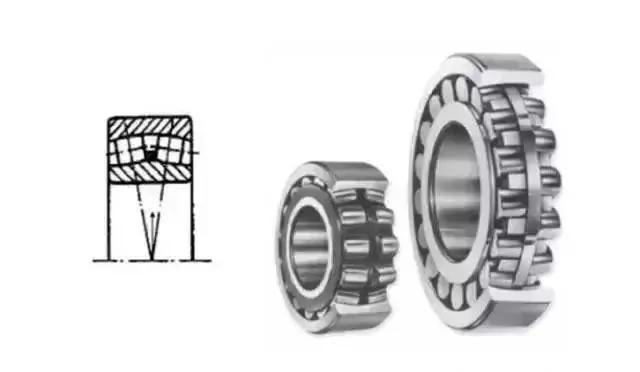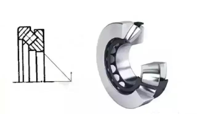 在這種軸承中,球面滾子呈傾斜排列。由于座圈滾道表面是球面,具有調(diào)心性能,所以可以允許軸有一定的傾斜。軸向載荷能力非常大,在承受軸向載荷的同時(shí)可以承受一定的徑向載荷,一般采用有潤(rùn)滑。