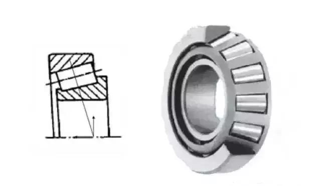 這類(lèi)軸承裝有一個(gè)圓臺(tái)形的滾子,由大的內(nèi)圈擋邊引導(dǎo),該設(shè)計(jì)使內(nèi)圈滾道面、外圈滾道面和滾子滾動(dòng)面的各圓錐面的頂點(diǎn)相交于軸承中心線上的一點(diǎn)。單列軸承可承受徑向載荷和單向軸向載荷,雙列軸承可承受徑向載荷和雙向軸向載荷,適用于承受重載荷和沖擊載荷。