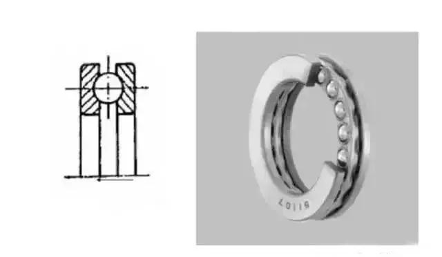 由帶滾道的墊圈型滾道圈和球、保持架組件組成。與軸配合的滾道圈稱為軸圈,與外殼配合的滾道圈稱為座圈。雙向軸承將中圈的秘軸裝上,單向軸承可承受單向軸向載荷,雙向軸承可承受雙向軸向載荷(兩者均不能承受徑向載荷)。