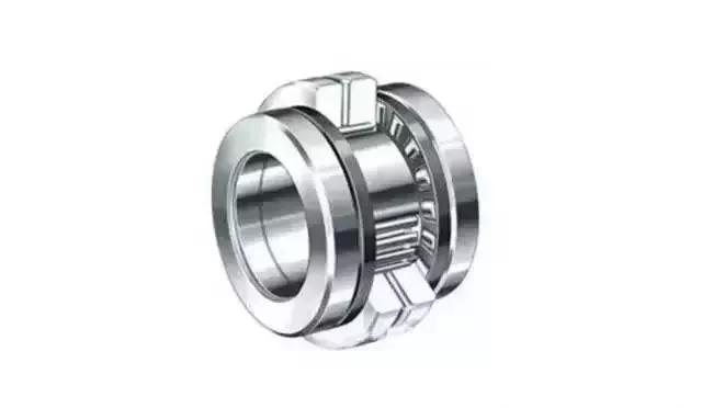 這種軸承裝有圓臺(tái)形滾子(大端為球面),滾子由滾道圈(軸圈、座圈)擋邊精確引導(dǎo),設(shè)計(jì)上使軸圈和座圈滾道表面與滾子的滾動(dòng)面的各圓錐面頂點(diǎn)相交在軸承中心線上的一點(diǎn),單向軸承可承受單向軸向載荷,雙向軸承可承受雙向載荷。